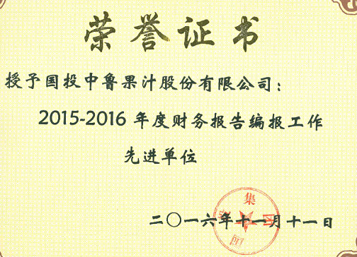 公司荣获“2015-2106年度国投集团财务报告编报工作先进单位”